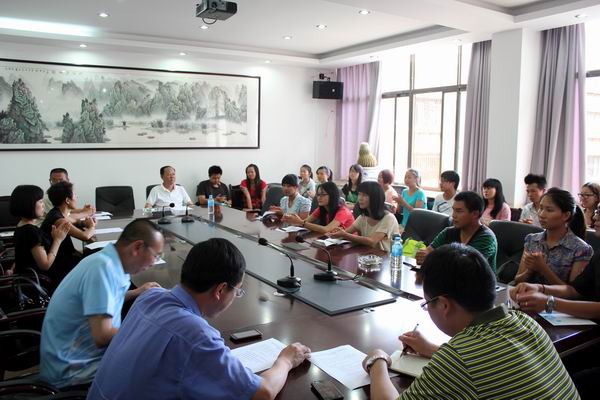 教務(wù)處處長張江榮就泰國留學(xué)生的學(xué)習成績、學(xué)分管理等做了合理安排,并期待留學(xué)生在泰國取得良好成績。