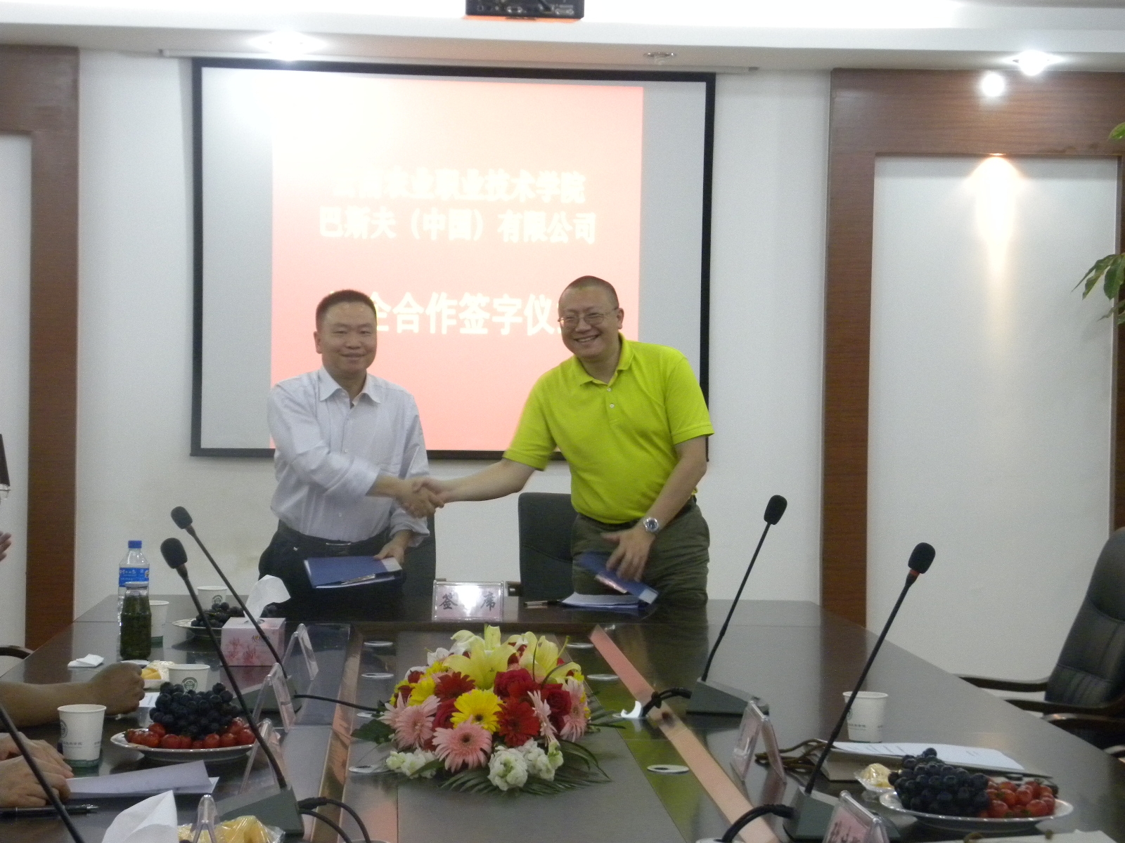 為培養(yǎng)高端技術(shù)型人才,切實(shí)加強(qiáng)校外實(shí)訓(xùn)基地建設(shè),培養(yǎng)和提高學(xué)生的綜合素質(zhì)及能力,使學(xué)生今后在更高平臺(tái)就業(yè)、成長(zhǎng)和發(fā)展,2011年6月15日下午2:30,在學(xué)院小哨校區(qū)行政樓二樓會(huì)議室,生物工程系與世界500強(qiáng)——巴斯夫(中國(guó))有限公司舉行校企合作協(xié)議簽訂儀式。云南農(nóng)業(yè)職業(yè)技術(shù)學(xué)院院長(zhǎng)彭志遠(yuǎn),副院長(zhǎng)趙莉、院長(zhǎng)助理田應(yīng)華、巴斯夫(中國(guó))有限公司北亞區(qū)高級(jí)財(cái)務(wù)經(jīng)理吳俊、西南片區(qū)經(jīng)理張建輝出席此次儀式。黨(院)辦凌軍主任、教務(wù)處楊有昌處長(zhǎng)、生物工程系王孟宇主任、陶艷芳副主任等參加簽訂儀式。簽訂儀式由趙莉副院長(zhǎng)主持。