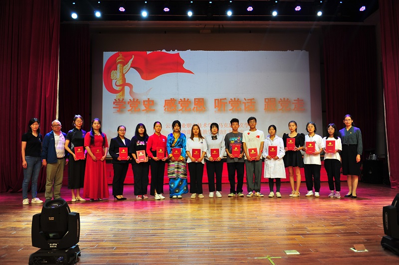 參加匯報演出的學生用自己喜聞樂見的方式向黨和祖國表達了自己的赤子之情:從“我和我的祖國”到“愛我中華”,同學們用熟悉的旋律唱出了對黨和祖國的依戀之情;從歌曲“映山紅”到舞蹈“燈火里的中國”,同學們用不同的表演形式展現了中華百年的滄桑巨變;從相聲中國夢到朗誦“書寫青春 圓夢中國”,同學們表達了農職學子的中國夢。《永遠跟黨走》聲情并茂的朗誦,讓現場觀眾回顧了中國共產黨的百年征程,表達了青年大學生在黨的教育和領導下為實現中華民族偉大復興貢獻青春力量的決心。情景劇《中國狙擊戰》的表演,將觀眾的思緒帶回到2020年初的武漢抗擊疫情的特殊時刻,展現了黨始終堅持以人民為中心的根本立場。朗誦《念奴嬌 追思焦裕祿》,真切表達了對焦裕祿同志的緬懷,也表達了農職學子不僅要繼續發揚中華民族艱苦奮斗、自立自強、堅韌不拔的精神品格,更是青年大學生要堅定不移的跟黨走、學習先進模范、不斷前進的決心表達。一個個精彩的表演融入了我院學生在黨史學習和思想政治理論課學習中的深刻感悟。