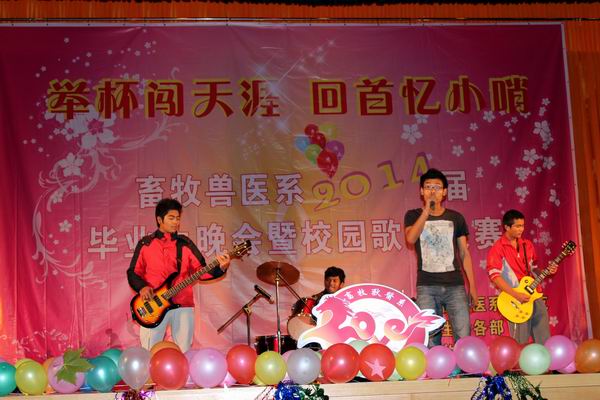 舉杯闖天下,回首憶小哨!隨著畜牧獸醫系職業技能鑒定考試的有序進行,牧醫學子即將離開學習生活了近3年的大學校園,為了給畢業生送上最美好的祝福,畜牧獸醫系2014屆畢業生晚會暨校園歌手大賽于