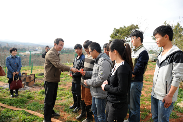 李永忠院長給學生發放慰問紅包