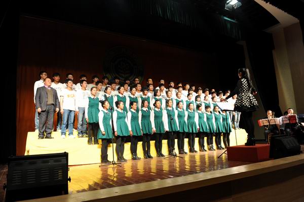 比賽在院合唱團震撼有力的《紅土地上譜新章》、《迎風飄揚的旗》的曲目表演中拉開帷幕。隨后,來自各系部的參賽隊以整潔的服裝、高亢嘹亮的歌聲、蓬勃向上的朝氣亮相比賽現場,輪番展示了他們精心編排的合唱曲目,聯袂為觀眾們帶來了一場精彩的視聽盛宴。比賽現場群情激昂、異彩紛呈、高潮迭起。宣傳部盧雪梅老師的《沁園春.雪》的精彩獨唱,院合唱團帶來的的《去一個美麗的地方》和《遠方的客人請你留下來》將現場氣氛推向高潮。