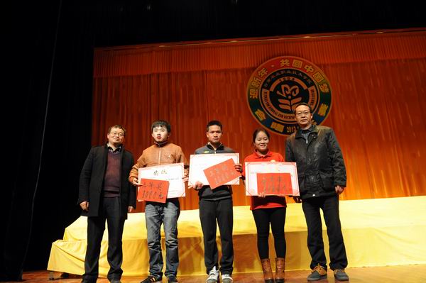在歡快熱烈的音樂聲中,領導、嘉賓向獲得各級獎項的隊伍逐一頒發獎狀和獎金,并與代表隊員合影留念。比賽圓滿落下帷幕。