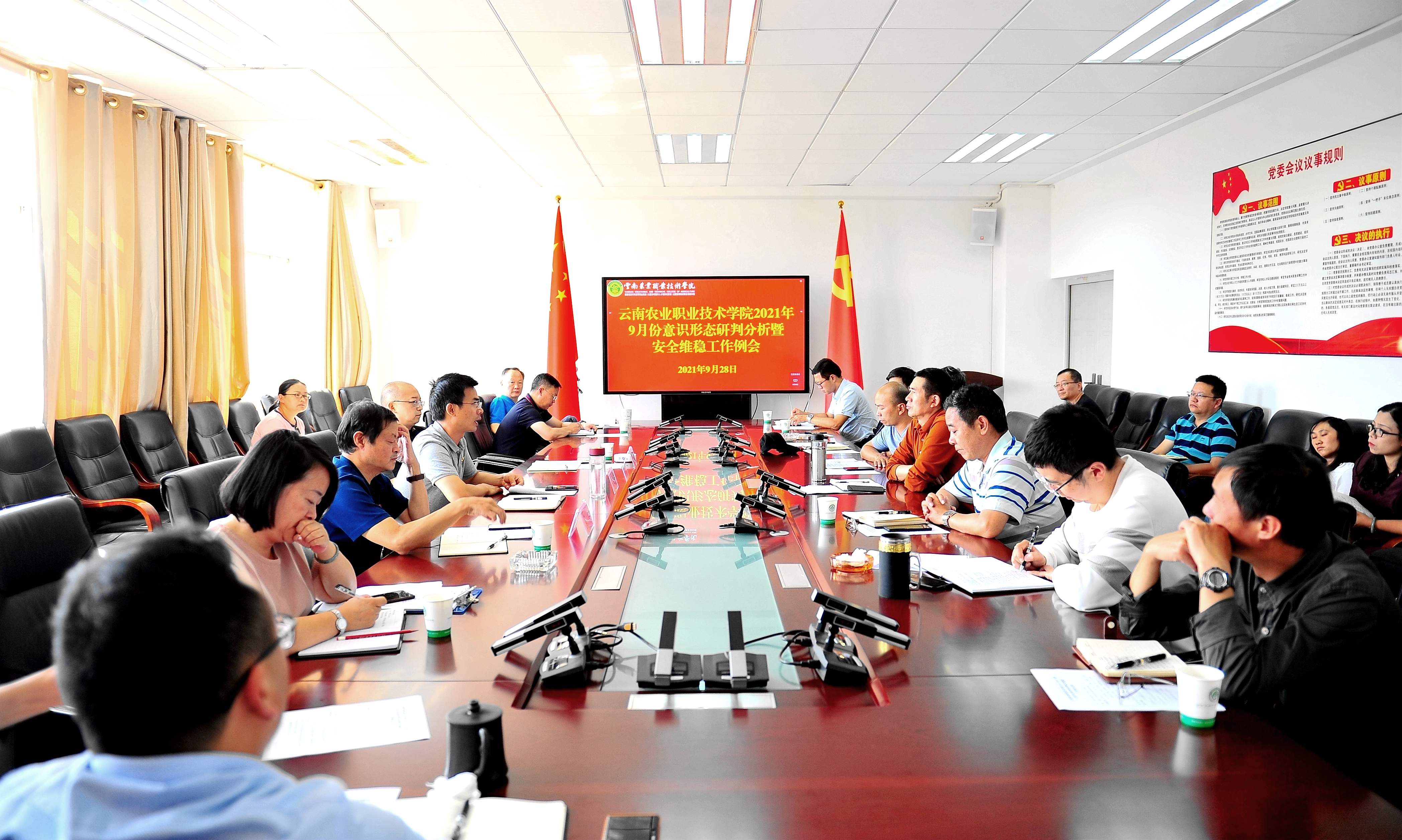 2021年9月28日下午,學院在小哨校區綜合樓四樓會議室召開9月份意識形態研判分析暨安全維穩工作例會,總結9月以來學院意識形態領域和安全穩定情況,分析研判形勢,交流經驗做法,安排部署下一階段工作。黨委副書記伍學龍、副院長楊波出席會議,學院各有關部門負責人參加會議,會議由副院長雷衡主持。