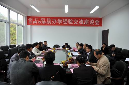 4月12日上午,參觀考察團首先來到國家級骨干高職院?!F州銅仁職業(yè)技術學院考察學習。銅仁職業(yè)技術學院在新校區(qū)行政大樓四樓會議室熱烈歡迎黨委書記崔金賦同志率領的云南農業(yè)職業(yè)技術學院參觀考察團一行。貴州銅仁職業(yè)技術學院黨委書記楊春光、副院長楊政水等領導在歡迎會上向我院考察團詳細介紹了銅仁職業(yè)技術學院辦學的基本概況,學院的規(guī)劃、建設、改革和發(fā)展等。著重介紹了他們在國家級骨干示范院校申報、規(guī)劃、建設等方面的典型經(jīng)驗和具體做法。