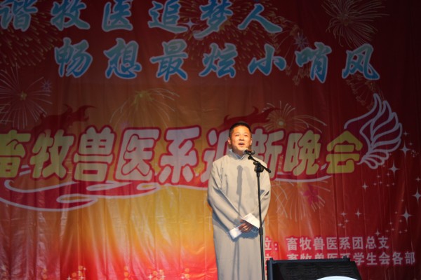 其間,畜牧獸醫系趙躍主任、錢林東書記對優秀學生及在學生技能大賽中取得優異成績的畜牧教研室學生進行了頒獎儀式。整個晚會充滿青春和活力,圓夢想牧醫之期待,展和諧牧醫之風采;做快樂牧醫之學子,樹智慧牧醫之風范;露自信牧醫之神采,行強健牧醫之理念;品理性牧醫之價值,走開放牧醫之道路!迎新晚會充分展現了和諧牧醫之夢想、文化、運動、和旋律。在全體牧醫人的通力合作下,在老師和學生的熱情演繹下,此次晚會取得圓滿成功,會后取得諸方好評。整場晚會精彩跌宕,整個禮堂座無虛席。(畜牧獸醫系供稿)