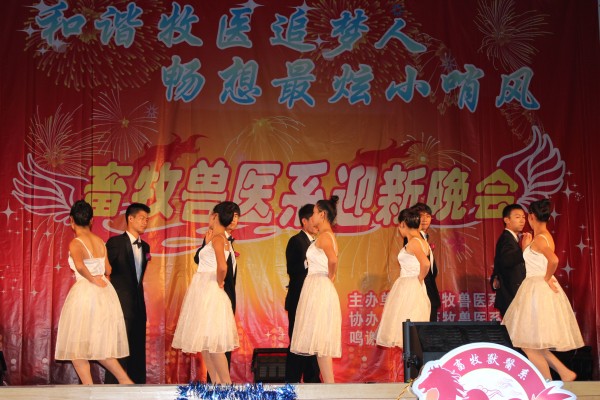 和諧牧醫,展示自我!2013年9月24日晚19:30,畜牧獸醫系在小哨校區大禮堂舉辦以“和諧牧醫追夢人 暢想最炫小哨風”為主題的2013級新生迎新晚會。學院對外合作交流處處長凌軍、黨院辦副主任鄭紹洲,兄弟系部相關領導應邀出席,畜牧獸醫系領導班子以及全體教職員工,牧醫系13級全體同學,及泰國留學生、小哨校區廣大師生觀看了本臺晚會。