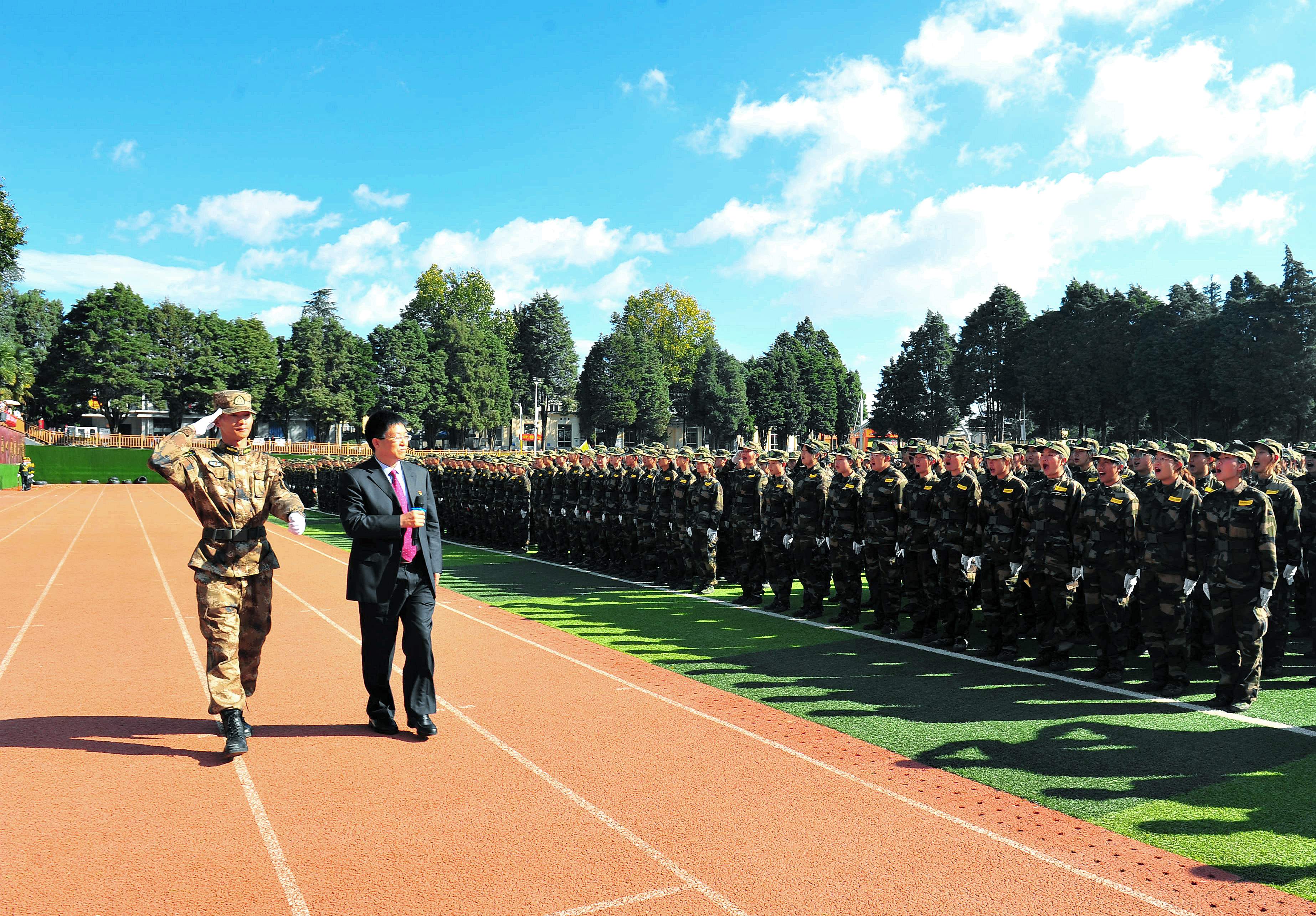 昆明兵站學生軍訓基地領導楊錫光上校講話,楊上校祝賀同學們圓滿完成訓練任務,對同學們的軍訓成果給予肯定,并希望同學們今后做一名有益于班級、學校和社會的有用之人。
