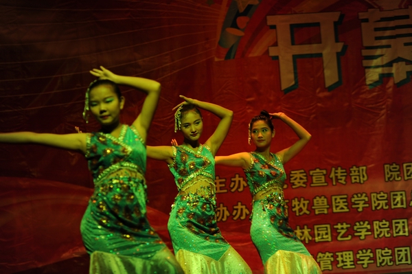 晚會上,冷煙花的“燃燒”,點燃了現場的熱情,一瞬間歡樂的氛圍彌漫了整個禮堂。主持人清晰的報幕和完美的串詞,一個個精彩絕倫的節目呈現在大家眼前。由院合唱團帶來的大合唱《黃土地上譜新章》、《愛我中華》拉開了晚會的帷幕。教工合唱團的精彩演出,帶來不同的現場體驗與“全共鳴”,親近藝術,感受高雅。經濟管理學院帶來的舞蹈《火柴人》,讓觀眾眼前一新。工程學院帶來的音樂劇《青春,別來無恙》,讓人投入、深思。晚會上,院學生會歌曲帶來的歌曲《撤退的歌》,將晚會氣氛推向高潮。畜牧獸醫學院帶來群舞《竹林曼舞》、工程學院帶來群舞《車阿迷車》、農學院帶來群舞《歡樂的跳吧》,令觀眾們跟隨著演員們感受到了不同美好生活的場景,共同分享他們的甜蜜喜悅之情。園林園藝學院帶來的獨舞《雀之靈》,讓觀眾目光鎖定在聚關燈下,去感受“孔雀公主”的翩翩舞姿。院街舞社帶來的舞蹈《FOCUE》更是讓觀眾眼前一亮。院文藝部帶來的視覺盛宴《農耕曲》,以“民以食為天,學農最光榮”,表達的同學們愛農、學農之情,為晚會拉下了帷幕。