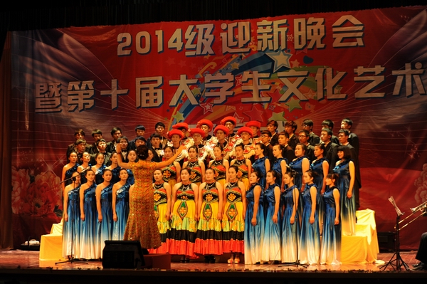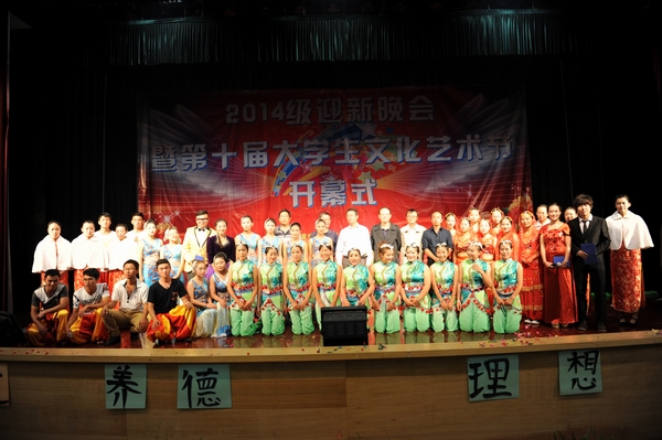 2014年9月23日晚上7點30分,學校在小哨校區大禮堂隆重舉行2014級迎新晚會暨第十屆大學生文化藝術節開幕式。本次晚會由黨委宣傳部、院團委主辦,各二級學院團總支協辦。李永忠院長出席晚會并致辭,出席晚會的還有學校副書記趙剛,副院長何明東、俞浩,黨委宣傳部部長馮志宏、學生工作處處長周誠、保衛處處長李昆、以及黨院辦、基礎部、各二級學院的領導,部分教師、輔導員、班主任,部分學生等近900人匯聚一堂參加了晚會。