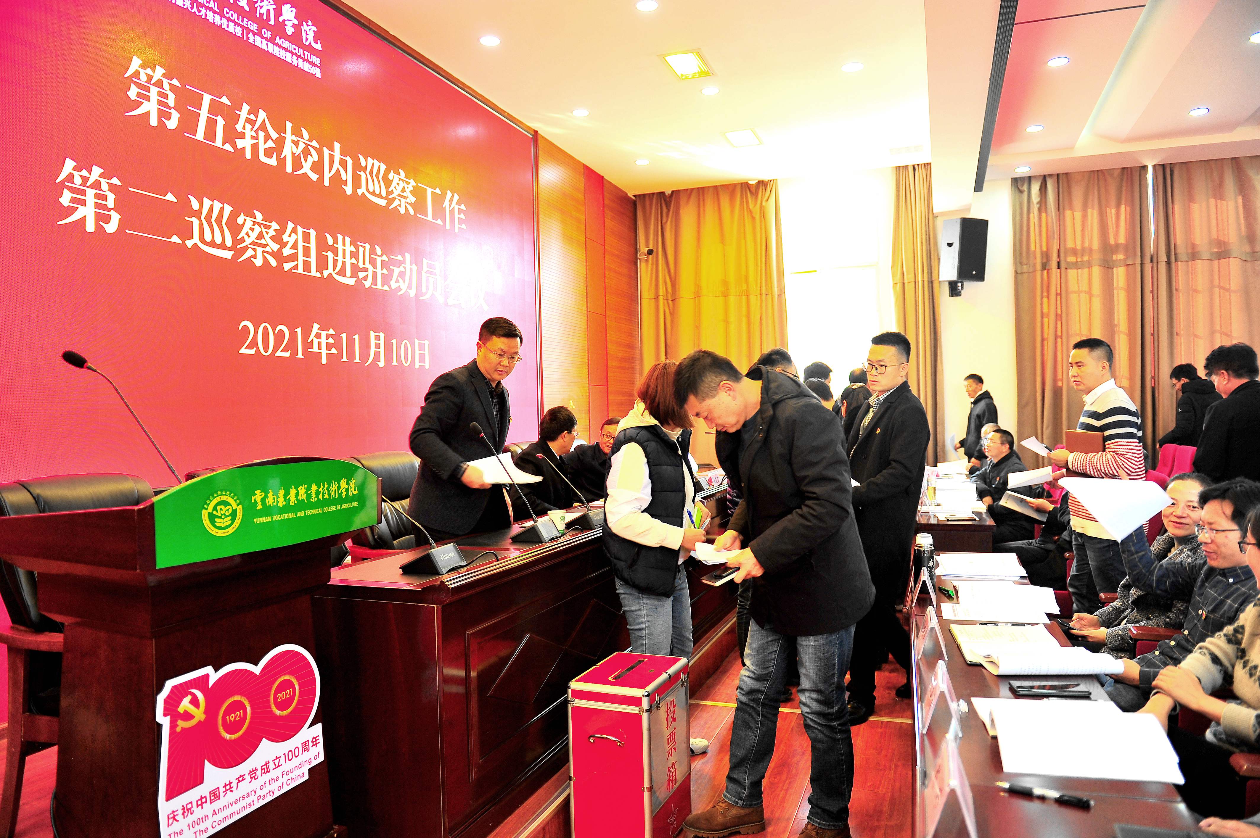 根據學院黨委統一安排部署,第五輪校內巡察第二巡察組將對互聯網技術學院黨總支、創新創業學院黨總支、機關黨總支、離退休黨總支開展巡察。11月10日,在小哨校區嘉銳樓104報告廳召開了進駐動員會。巡察工作領導小組成員,黨委巡察辦主要負責人,巡察組全體成員;被巡察黨政部門副科及以上干部,黨總支書記、委員,黨支部書記、委員、職工代表參加了會議。會議由機關黨總支書記朱紅銳同志主持。
