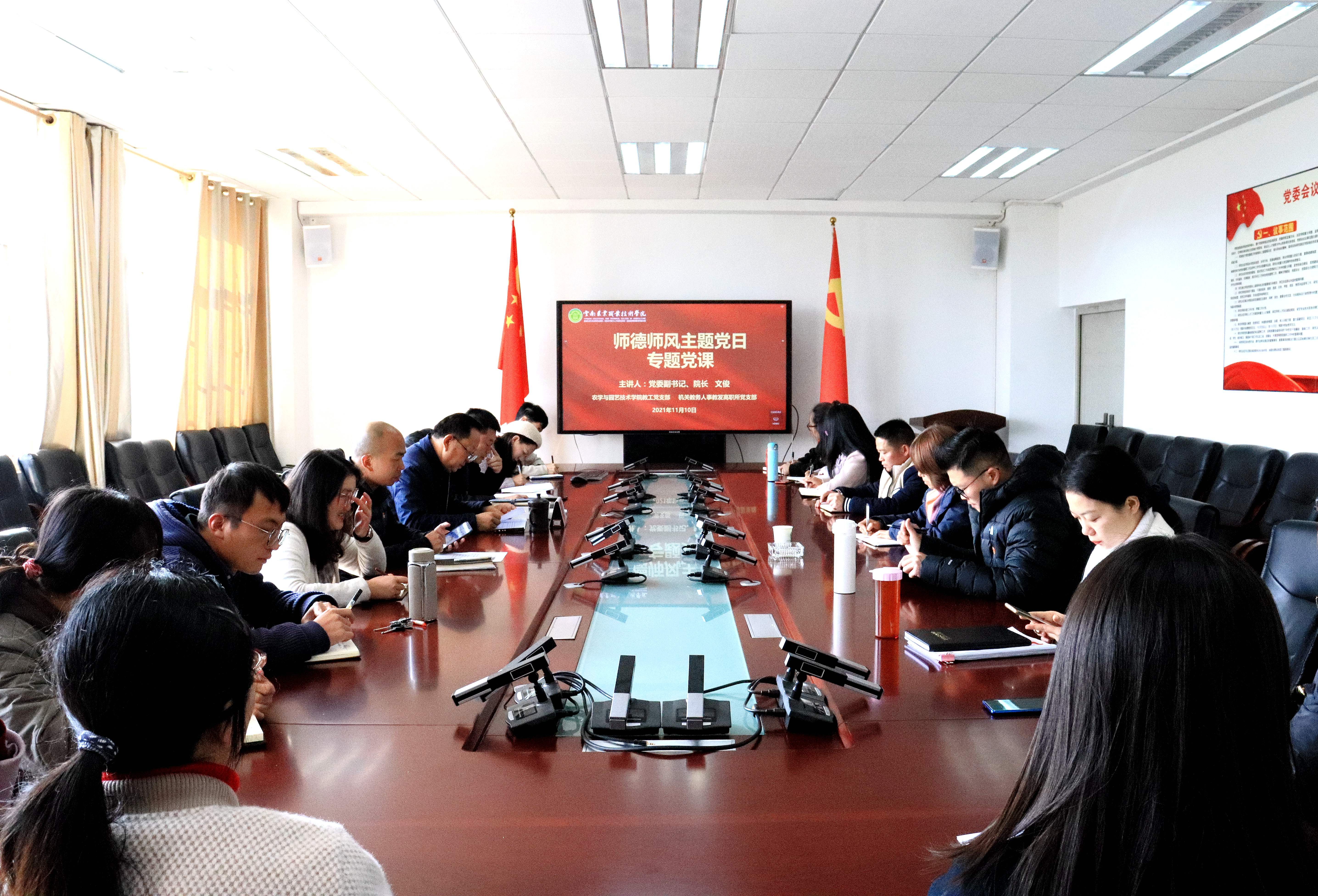通知中心11月10日下午,學院黨委副書記、院長文俊同志在小哨校區綜合樓421會議室為所在黨支部機關教務人事教發高職所黨支部,以及聯系部門農學與園藝技術學院黨總支部上了一堂題關于師德師風的專題黨課。