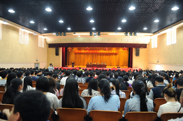 黨院辦、宣傳部、學生處、教務處、招就處、團委、二級學院、基礎部中層領導;二級學院團總支書記、招生就業科科長;畢業班班主任;二級學院輔導員、教師代表參加大會,共同見證了2016屆畢業生收獲碩果的喜悅時刻。(黨委宣傳部供稿)