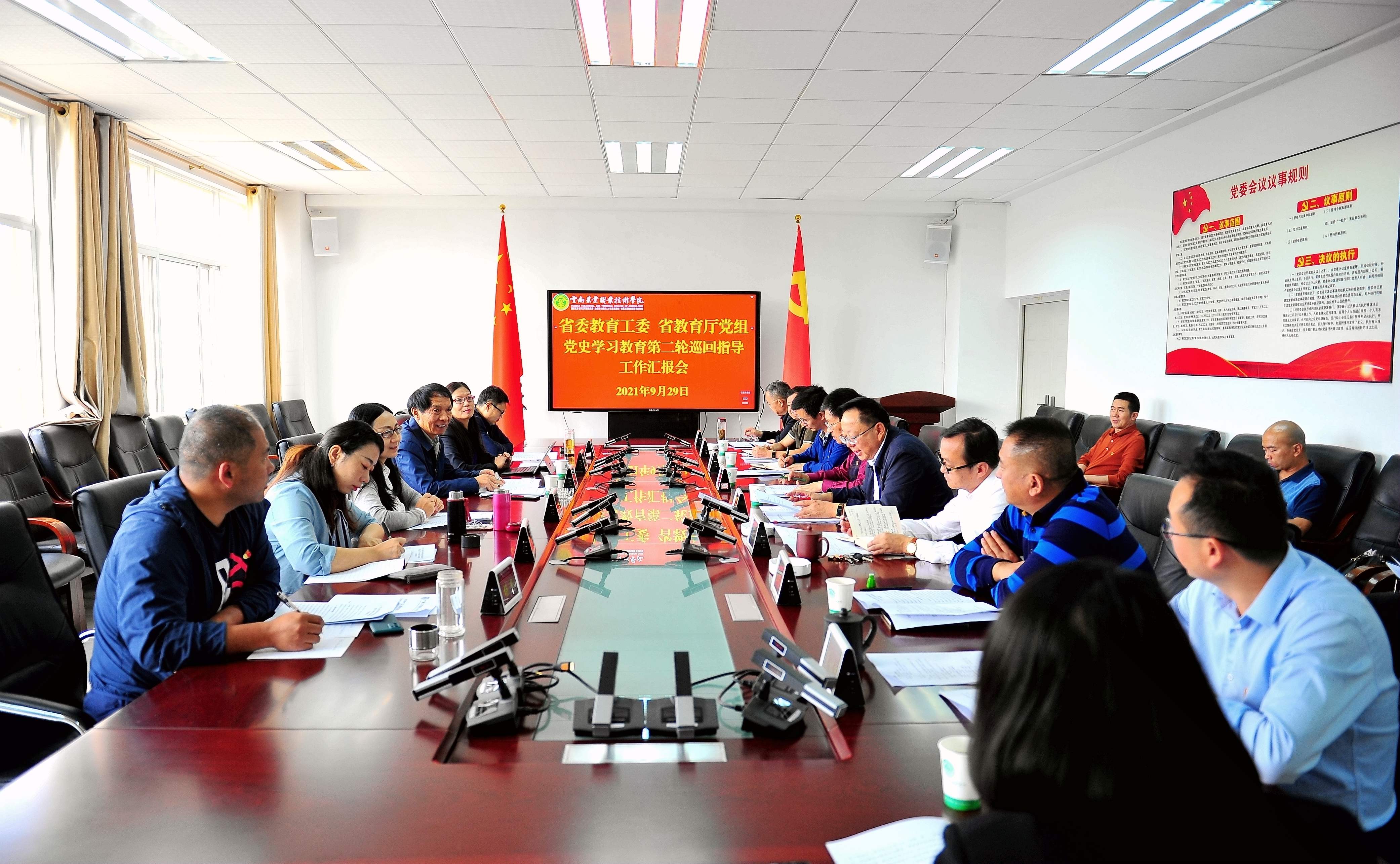 通知中心9月29日,省委教育工委、省教育廳黨組黨史學習教育第五巡回指導組對我院開展第二輪巡回指導工作。上午9:30分,工作匯報會議在小哨校區綜合樓四樓會議室召開。第五巡回指導組組長程小放、副組長蔡曉麗及成員;學院黨史學習教育領導小組全體成員參加會議,黨委副書記、院長文俊主持會議。