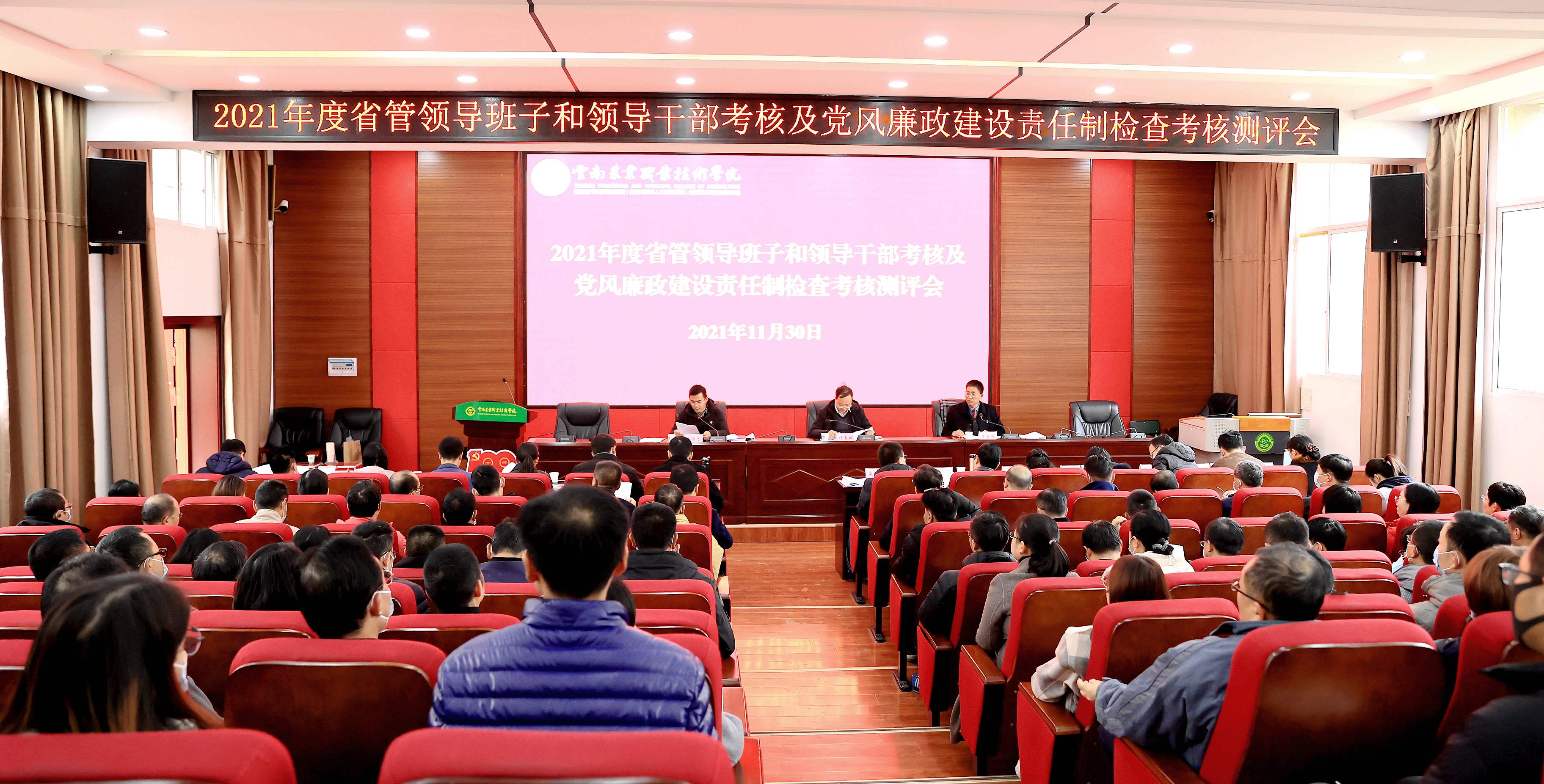 會上,進行省管領導班子和領導干部考核民主測評。民主測評結束后,考核組通過查閱資料、個別談話、延伸檢查等方式,對學院落實2021年度黨風廉政建設責任制情況進行了全面檢查考核。