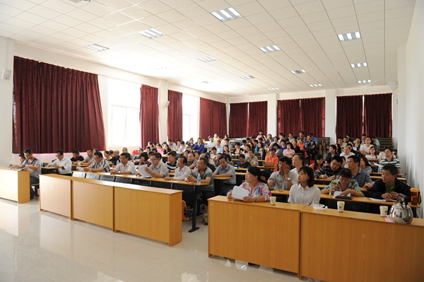 2015年5月14日下午2:40—4:00,我校在小哨校區(qū)新辦公樓一樓階梯教室召開“學(xué)風(fēng)建設(shè)年”總結(jié)暨“專業(yè)建設(shè)年” 動(dòng)員大會(huì)。學(xué)校黨政領(lǐng)導(dǎo)、全體副科以上干部、教務(wù)處全體職工及無課教師參加了會(huì)議。會(huì)議由學(xué)校黨委書記崔金賦主持。