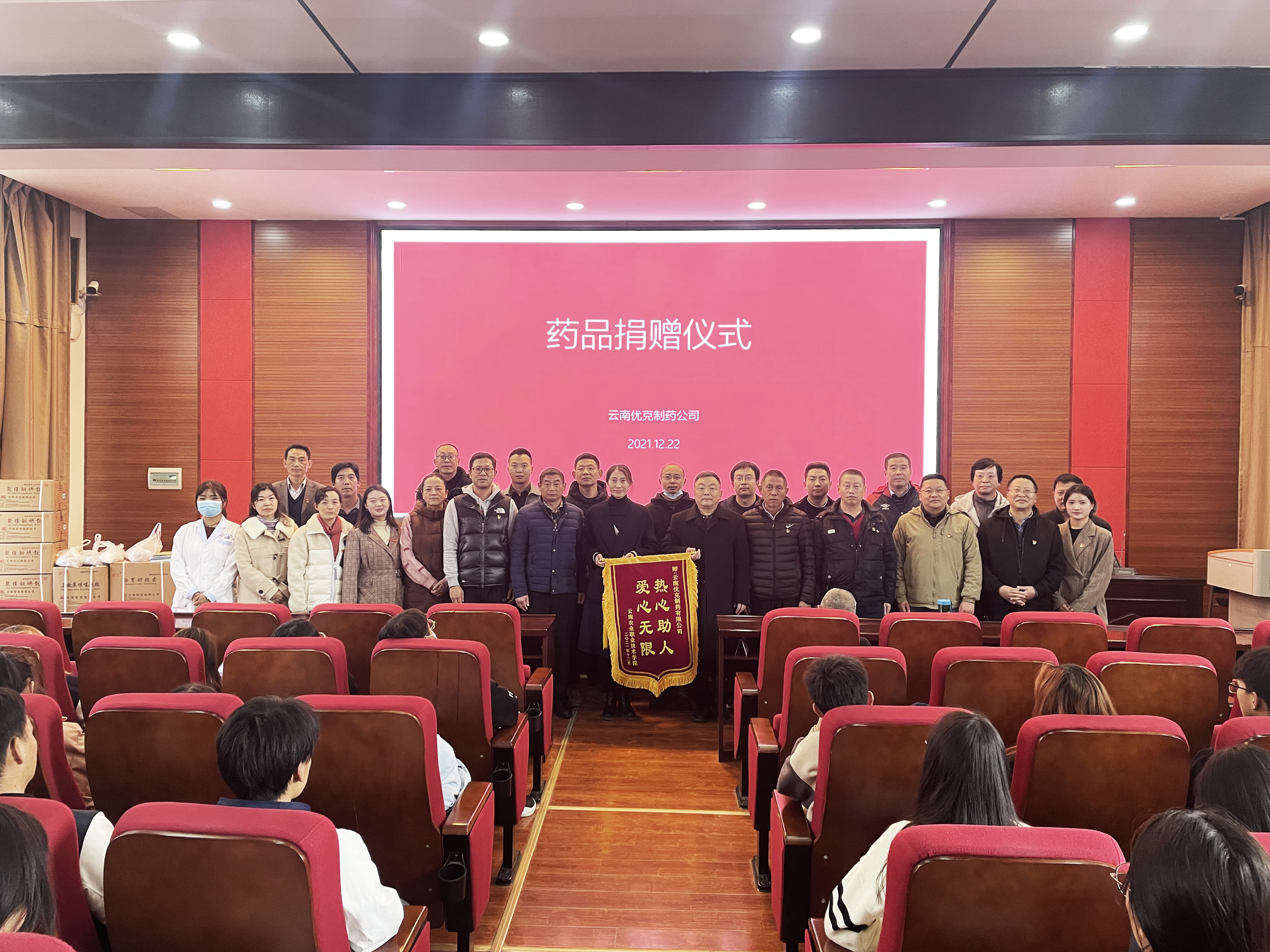 12月22日下午,在小哨校區嘉銳樓階梯教室舉辦了為師生辦實事藥品捐贈活動。云南優克制藥有限公司總經理唐秋海、辦公室主任季春燕,后勤基建黨支部、辦公室(黨委巡查辦)黨支部全體黨員、師生代表等300余人參加捐贈儀式。