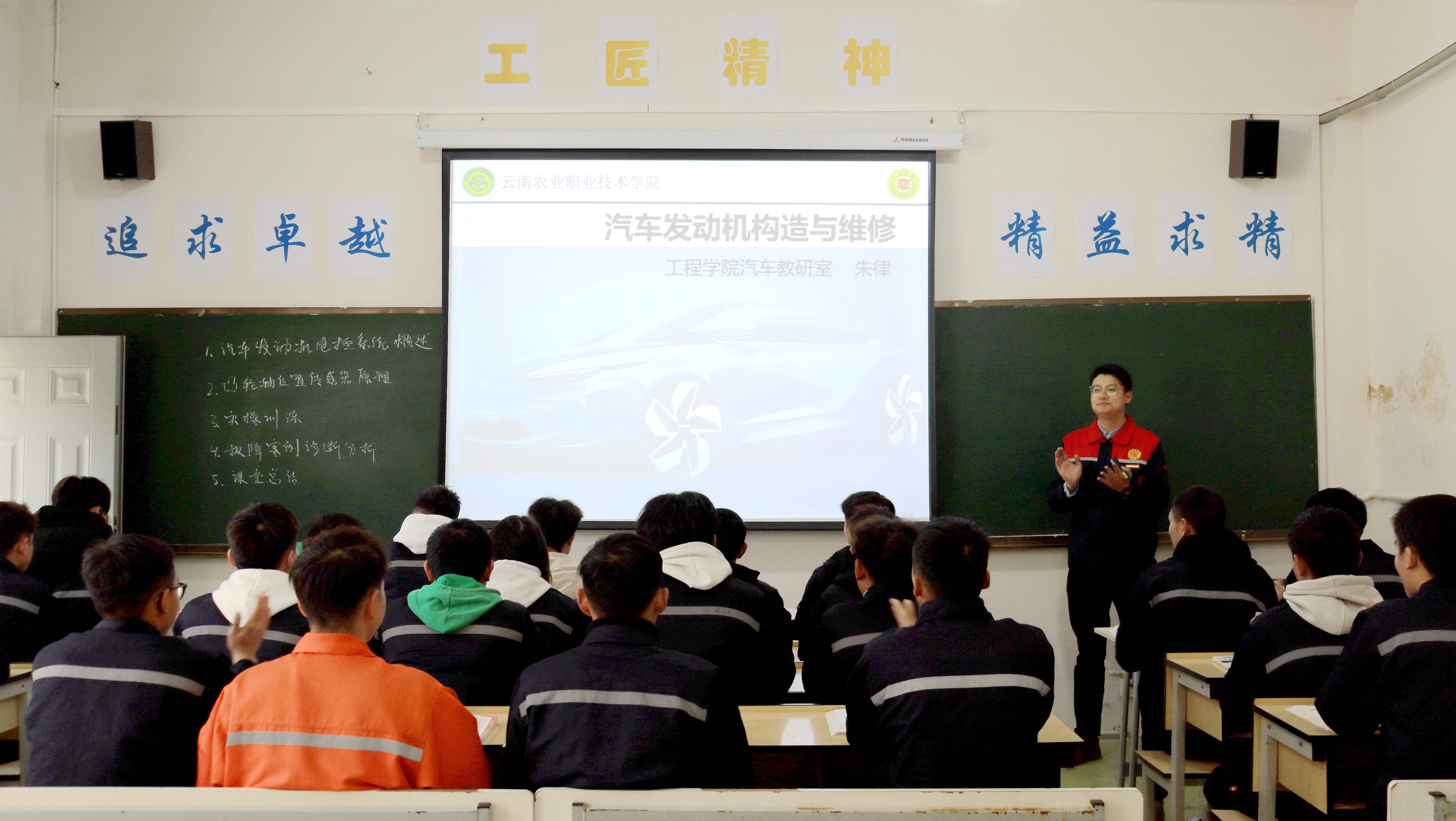 會前,參會領導和教師一起觀摩學習了工程學院汽車專業的朱律老師和20級汽修一班的同學們共同呈現的“課程思政”示范公開課。