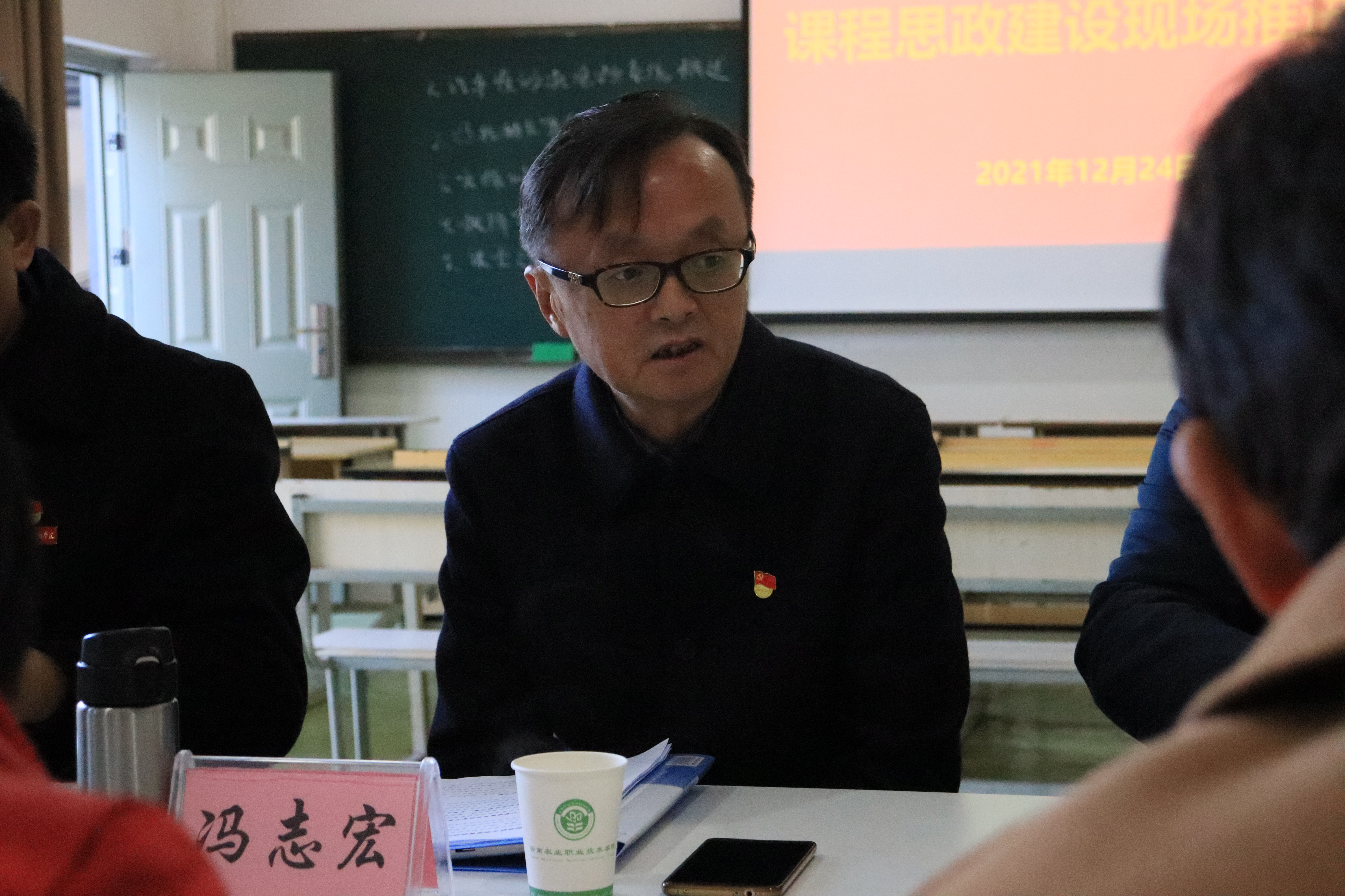學院黨委書記崔金賦同志對本次推進會作總結講話。他從課程論的角度談對“課程思政”的感受,指出“課程思政”是顯性教育與隱性教育的有機結合,“課程思政”不是喊口號,而是要有意識的進行設計。崔書記結合朱律老師的授課,從教室里的標語、上課前后的儀式感、學生的著裝、扎實的專業基礎、嚴謹的教風、耐心的講解、恰如其分的小故事、實踐環節的安全教育、課程結束時小結的畫龍點睛等點滴細節為切入點,對“課程思政”課堂進行了深入細致的分析和評論,引導參會人員如何認真領悟“課程思政”的基本元素,深刻感悟教師在授課中對勤業敬業、感恩、尊重知識、尊師重教等價值情感的滲透,用接地氣的語言把課程中的思政元素潤物細無聲地展示出來。