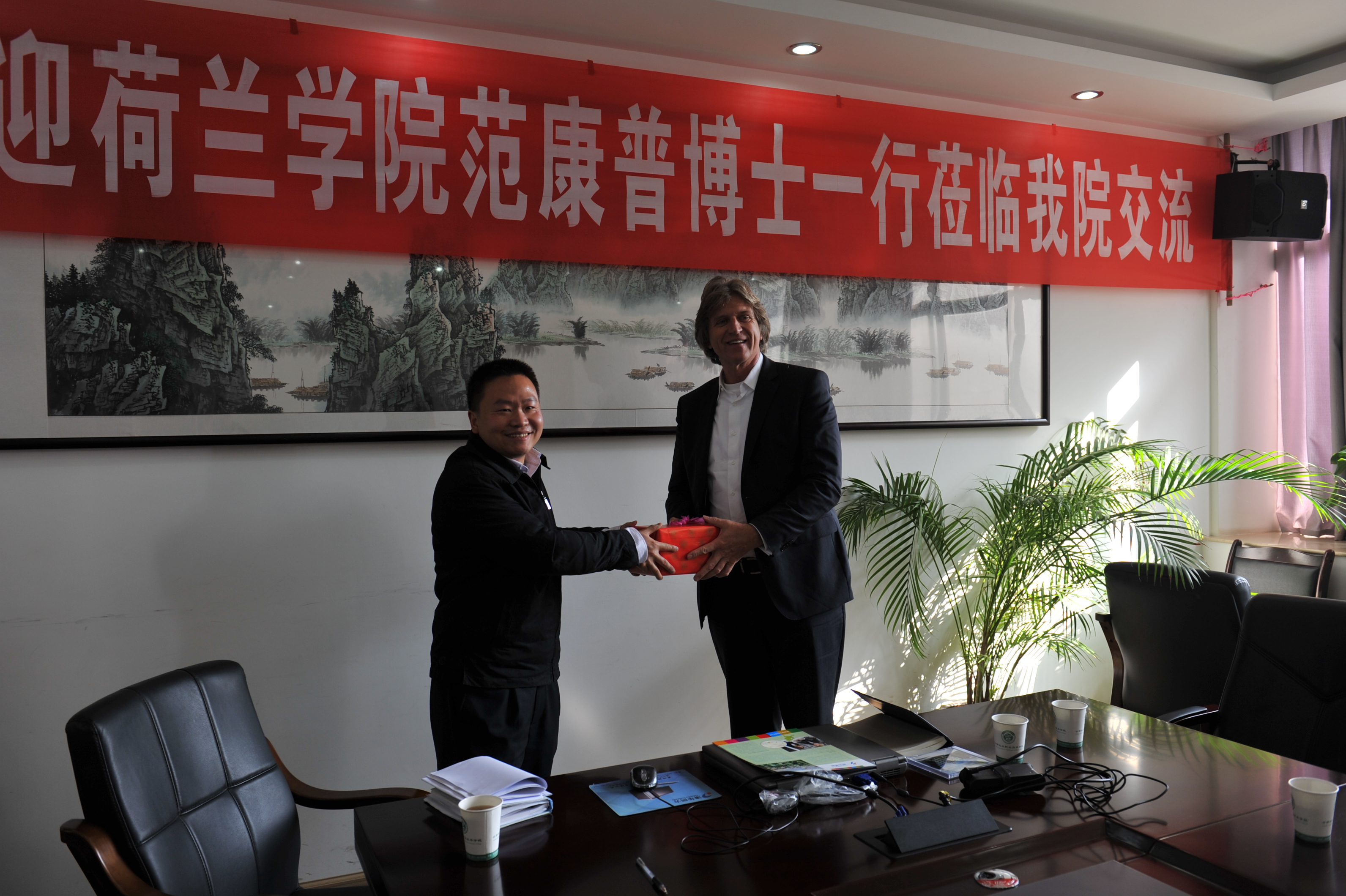 交流會后,彭志遠院長代表學院向范康普博士一行贈送了紀念品。(黨委宣傳部 供稿)