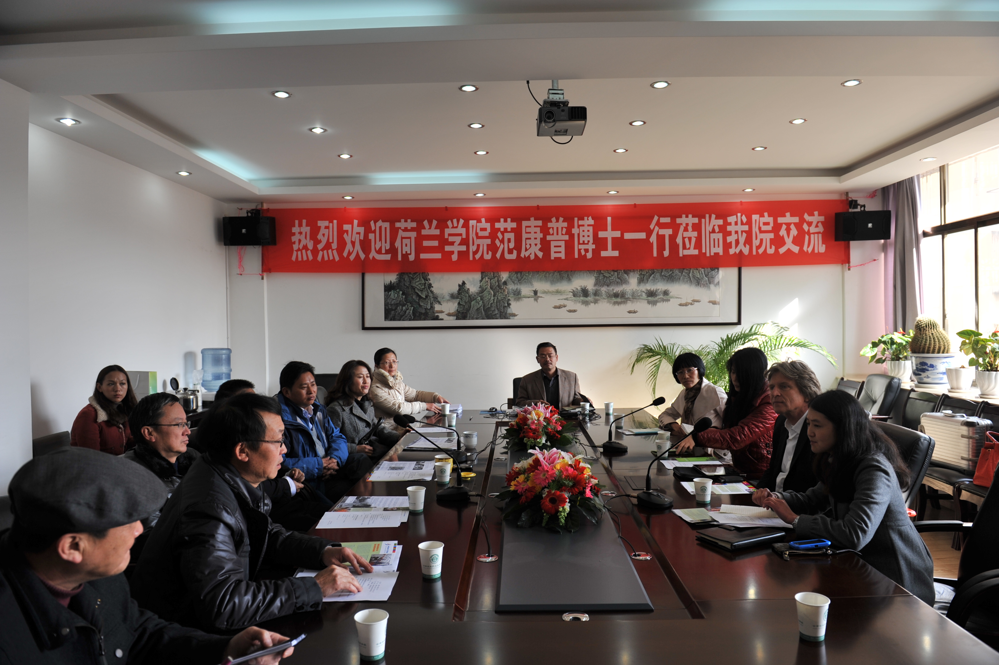 首先,彭志遠院長致歡迎詞。彭志遠院長代表學院、代表學院全體師生對范康普博士一行的來訪表示熱烈歡迎。彭志遠院長向范康普博士一行介紹了學院的歷史發展,介紹了學院院系及專業設置;彭院長表示中國與其他國家在各個層面的合作交流在不斷地加強和拓展,學院也特別重視學院與其他國家學校和組織的合作與交流,通過拓展合作交流,也將促進學院的不斷發展。彭院長希望通過交流找到更多與荷蘭學院合作的基礎和條件,加深彼此的交流和合作,以實現雙方的互利互惠。