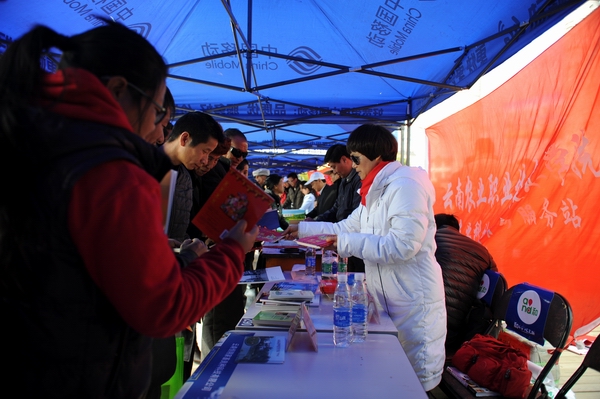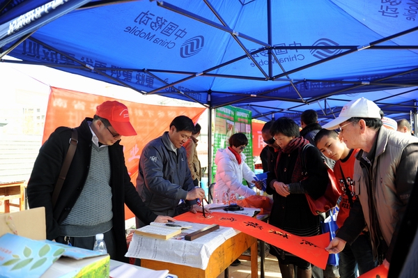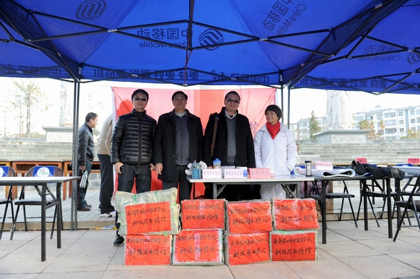 我校服務攤點準備了文房四寶,現場為當地群眾書寫春聯100余對,當地的普通市民、農民、中小學生紛紛前來排隊索取春聯。我校參與三下鄉活動的工作人員們熱情免費發放2015年(乙末)年通書、懷歷、歷書共計700冊,免費發放種類有種植、養殖技術、手工實用技術、衛生知識、傳統文化、法律知識、生活等圖書共計500多冊。同時,服務隊還把學校的招生簡章、綜合院刊等宣傳材料發放給市民,進一步宣傳了學校。