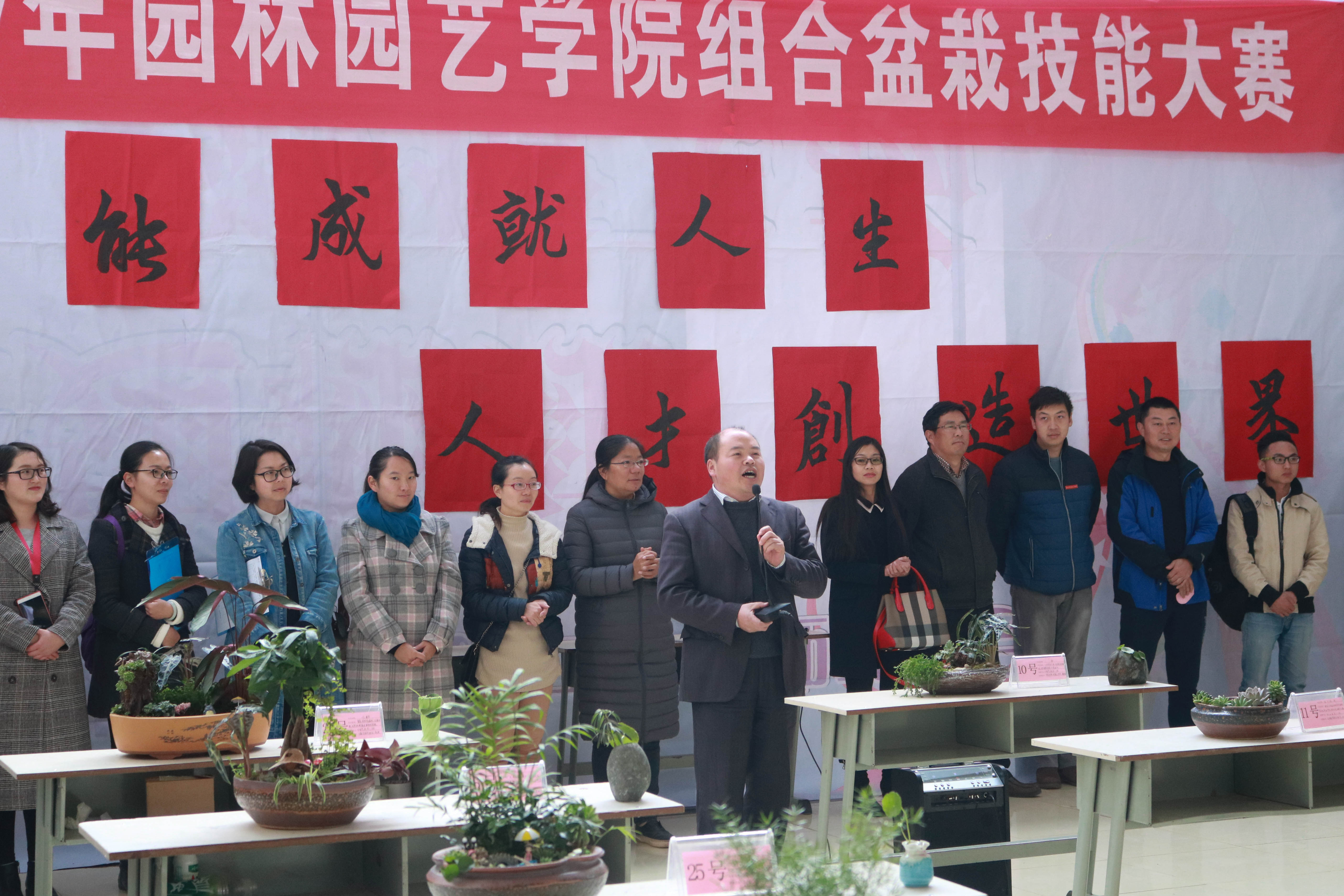 唐世凱院長代表園林園藝學院致辭,要求同學們認真準備、公平公正賽出自己水平,同時也希望同學們能通過本次比賽,鞏固所學專業知識,提升實際操作技能能力,真正實現“組合盆栽”作品的“色、形、藝”三者有機統一。